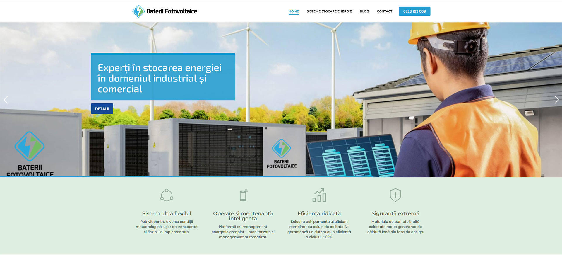 Realizare site de prezentare pentru o firma care comercializeaza baterii pentru panouri fotovoltaice. Tehnologie: Wordpress.